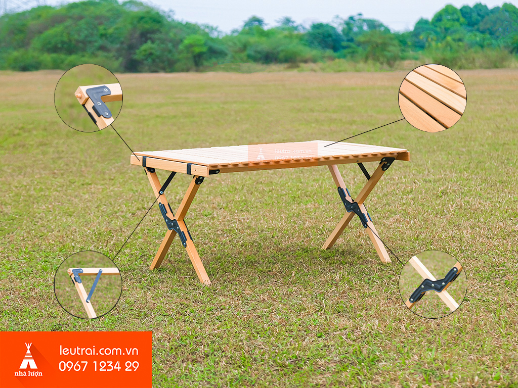 Bàn gỗ cuộn dã ngoại T90 với thiết kế gọn nhẹ, dễ sử dụng, dễ mang theo, phù hợp cho nhóm đi đông người. Sản phẩm được ứng dụng với các chuyến đi trong ngày và cả sinh hoạt thường nhật.