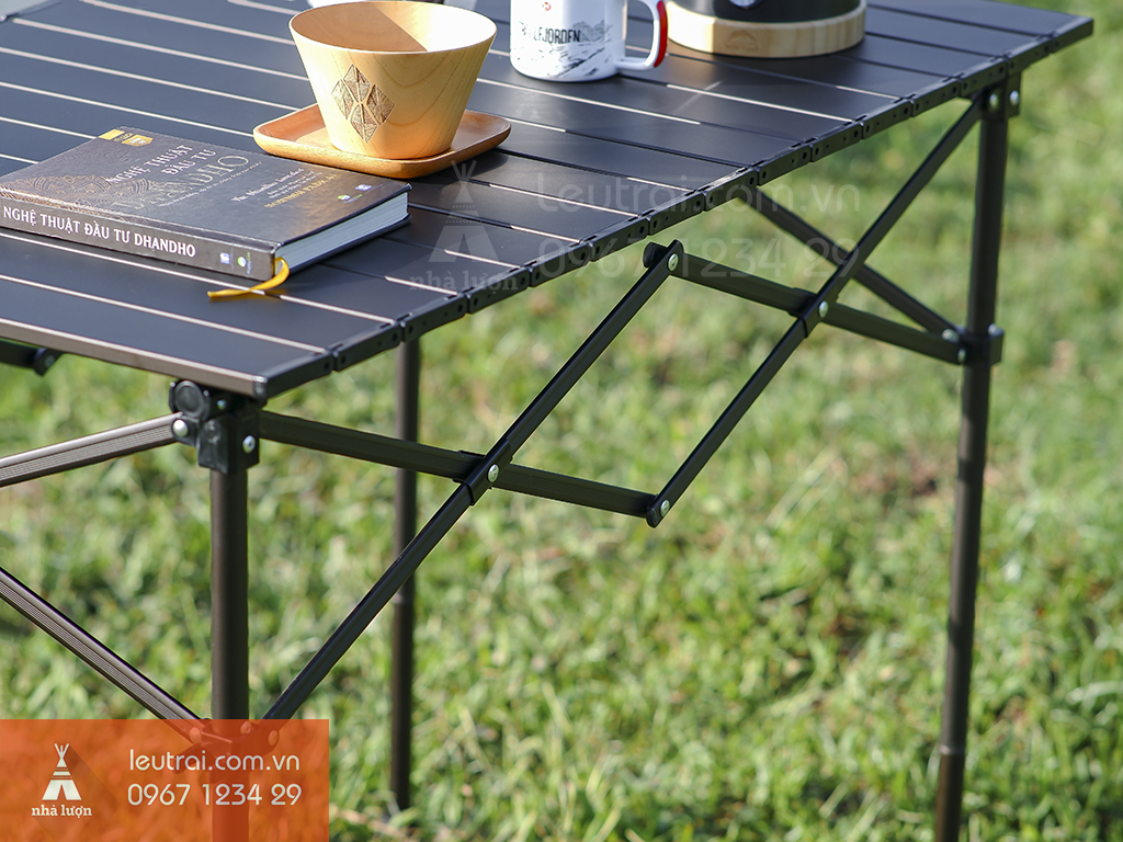 Chân đứng của bàn được bọc nhựa cứng giúp gia tăng sức chịu cho sản phẩm, hỗ trợ bàn đứng vững trên các địa hình khác nhau, có thiết kế đẹp, được sơn tĩnh điện chống xước. Khi gấp gọn bàn chỉ nặng 3kg.