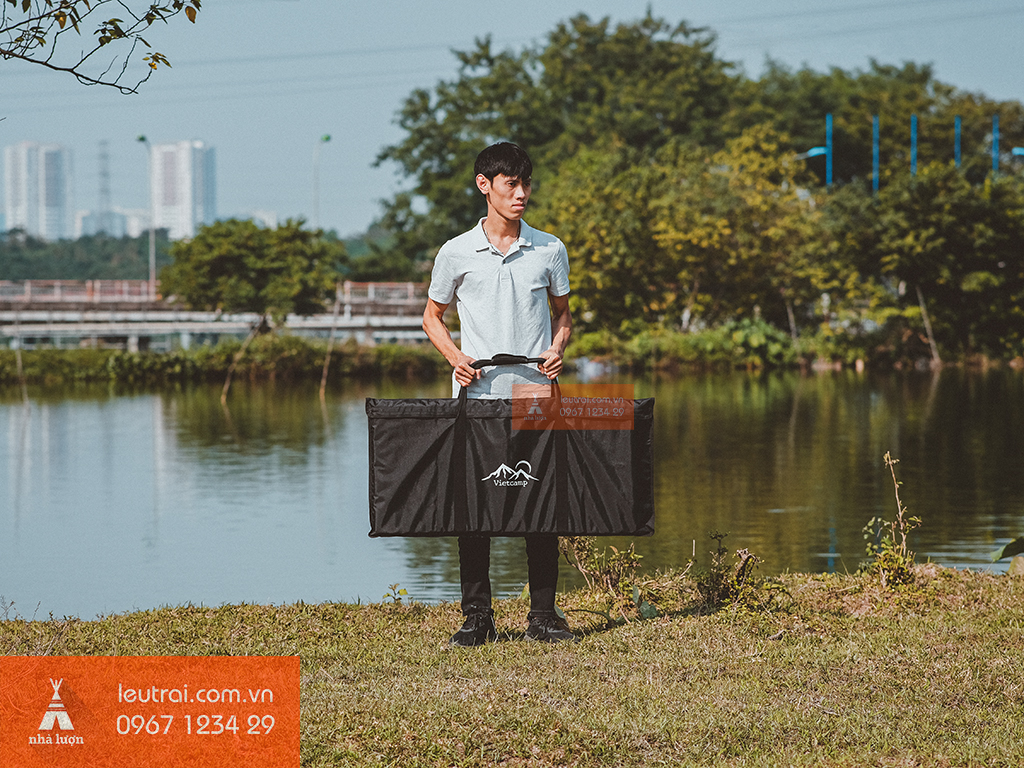 Bàn thép mặt gỗ Homecamp BTG-021 gấp gọn để trong túi đựng dễ dàng mang đi trong các chuyến dã ngoại,picnic