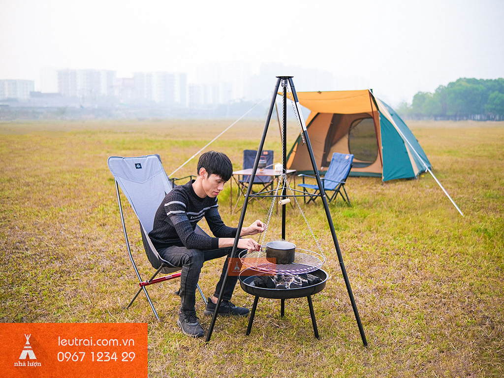 Bếp nướng dã ngoại BBQ 3 chân có giá treo