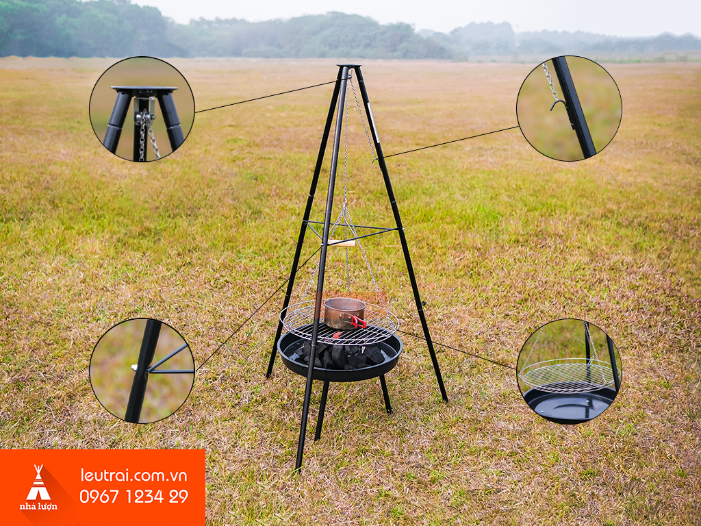 Bếp nướng dã ngoại BBQ 3 chân còn phù hợp sử dụng với các dụng cụ khác như: nồi treo, bộ nồi dã ngoại sử dụng ngoài trời,.... Có thể đặt nhiều nồi nhỏ trên vỉ nướng