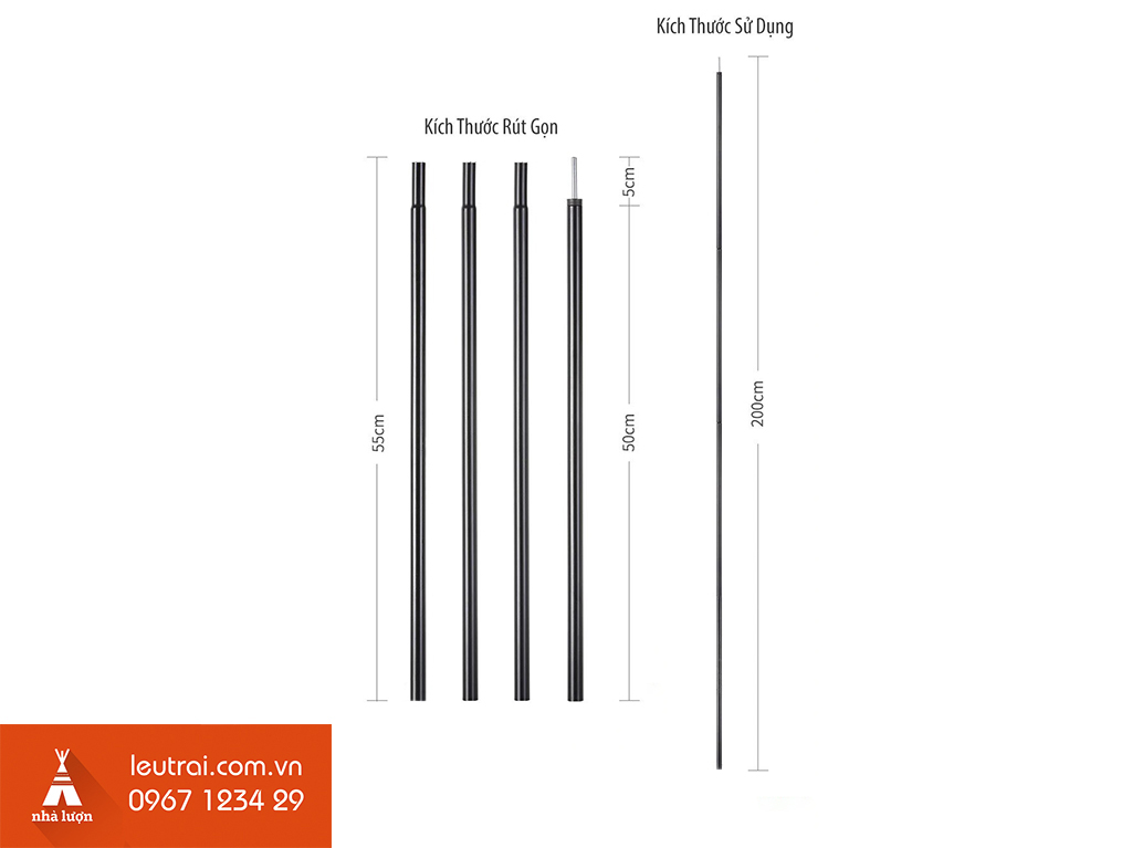 Bộ cọc 2 cây với độ dài 2m thích hợp sử dùng làm cột chống lều, tăng, cột treo đèn,...