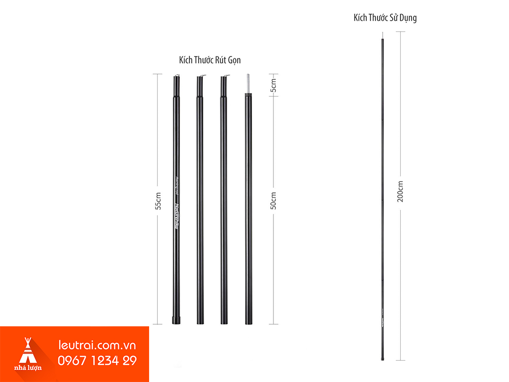 Bộ cọc 2 cây với độ dài 2m bao gồm 4 khúc tách rời, chúng ta có thể dễ dàng rút ngắn theo nhu cầu sử dụng