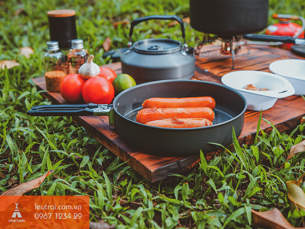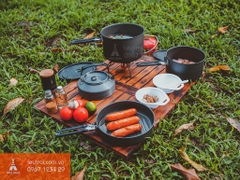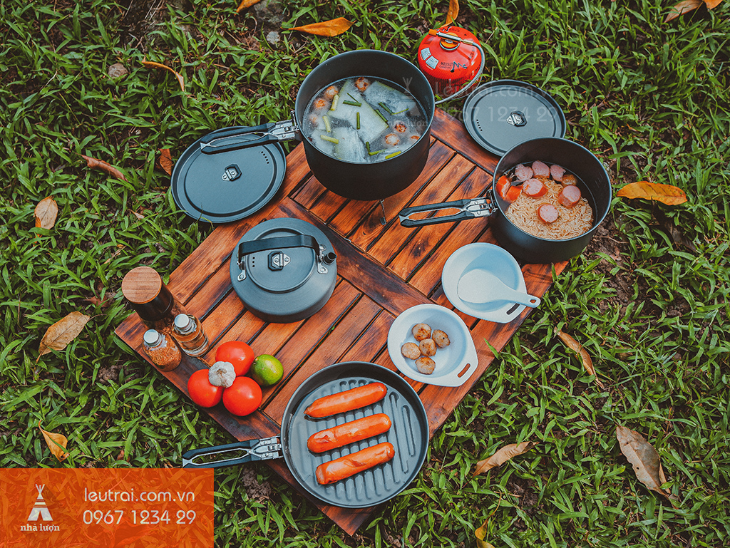 Bộ nồi ấm chảo dã ngoại có thể xếp chồng lên nhau và bỏ vào bên trong túi lưới đi kèm phù hợp trong các chuyến đi dã ngoại ngoài trời, leo núi,....
