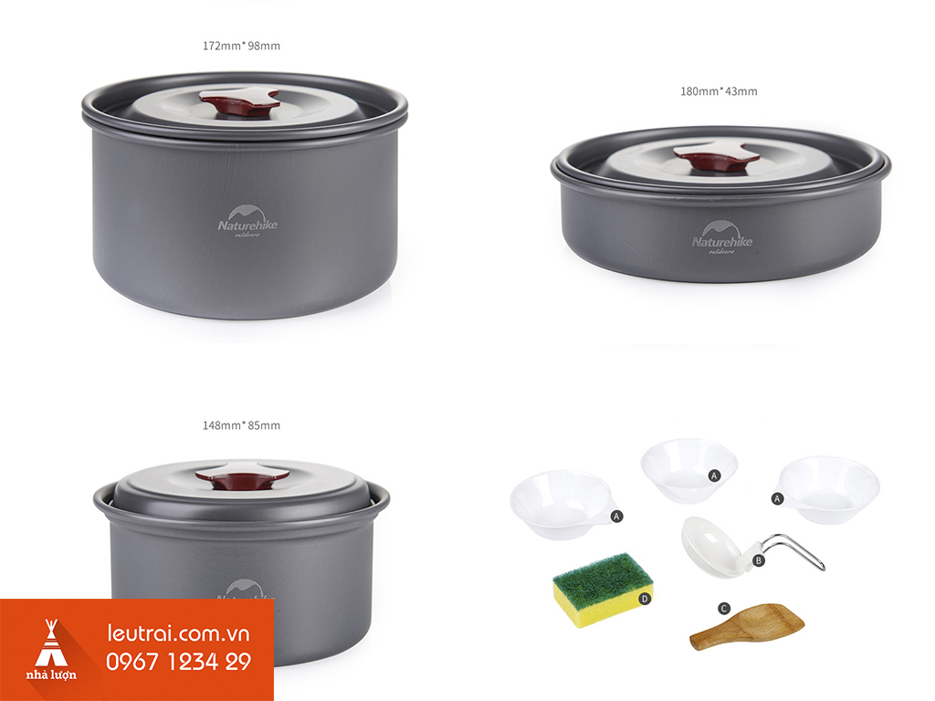 Bộ nồi dã ngoại 3 món Naturehike NH15T203-G