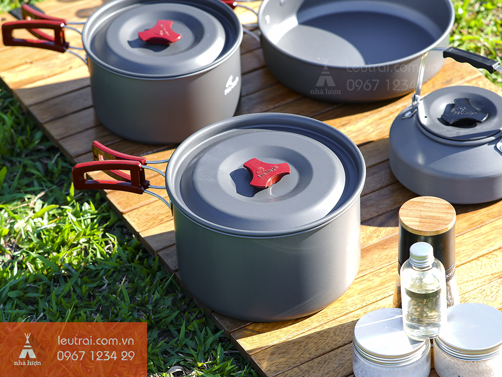 Bộ nồi được bày trí xếp chồng lên nhau không chiếm quá nhiều diện tích, giúp người dùng thuận tiện mang đi trong mỗi chuyễn dã ngoại, picnic