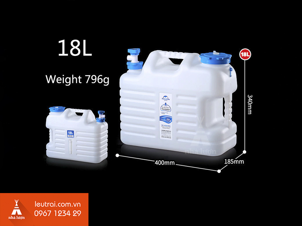 Can nước Naturehike NH16S0018-T với dung tích chứa lên đến 18L, đảo bảo nhu cầu về nước sạch cho chuyến đi cắm trại của bạn
