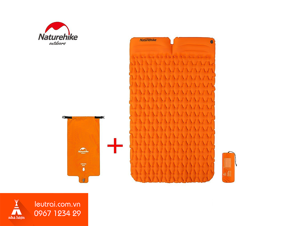 Đệm có thể gập gọn đựng trong túi khi không sử dụng. Bộ sản phẩm kèm theo một túi bơm hơi.
