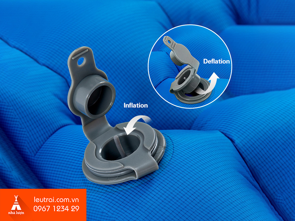 Với thiết kế với miệng bơm hơi độc đáo, cho phép người dùng có thể sử dụng túi bơm hoặc máy bơm hơi chuyên dụng. Phần miệng bơm của đệm có cấu tạo nắp đạy silicon, có tác dụng cản trở không khí thoát ra bên ngoài, giúp đệm sử dụng lâu hơn.