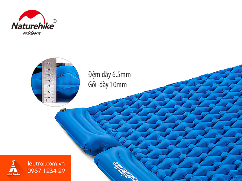 Thiết kế bề mặt kiểu hộp trứng độc đáo với các đường vân nổi khắp đệm, không chỉ cách nhiệt tốt mà còn có tác dụng mát xa cơ thể để giảm bớt mệt mỏi do đi bộ đường dài ngày dài mang lại cho bạn cảm giác thoải mái nhất khi nghỉ ngơi. Ngoài ra đệm khi sử dụng có độ dày 6.5mm, kết hợp với gối hơi dày 10mm cho cảm giác thoải mái khi nằm nghỉ ngơi sau 1 ngày dài hoạt động dã ngoại ngoài trời.