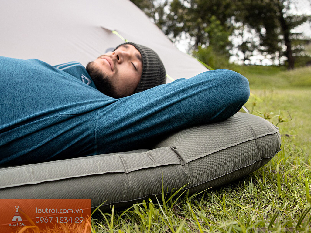 Thiết kế bề mặt với các đường vân nổi khắp đệm, không chỉ cách nhiệt tốt mà còn có tác dụng mát xa cơ thể để giảm bớt mệt mỏi do đi bộ đường dài ngày dài mang lại cho bạn cảm giác thoải mái nhất khi nghỉ ngơi. Ngoài ra đệm khi sử dụng có độ dày 9cm, kết hợp với gối hơi dày cho cảm giác thoải mái khi nằm nghỉ ngơi sau 1 ngày dài hoạt động dã ngoại ngoài trời.
