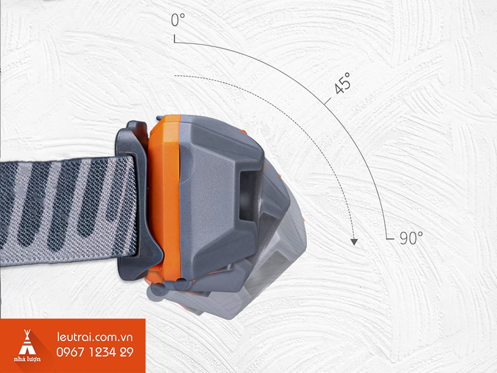 Kích thước đèn nhỏ gọn, chỉ 74g bao gồm cả dây đeo đầu, cùng với khả năng điều chỉnh góc chiếu sáng tới 45° giúp anh/chị dễ dàng điều chỉnh góc chiếu sáng phù hợp với các hoạt động của mình.