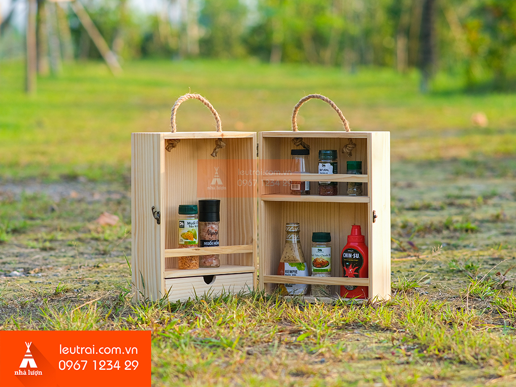 Hộp gỗ vintage đựng gia vị đi dã ngoại