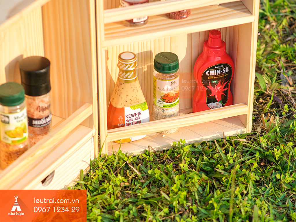 Không còn nỗi lo đồ đựng lắt nhắt,không kín,gia vị mang theo dễ ẩm mốc gây mất vệ sinh, hộp gỗ đựng gia vị dã ngoại B37 mang tới sự tiện dụng gọn nhẹ,được sắp sếp khoa học