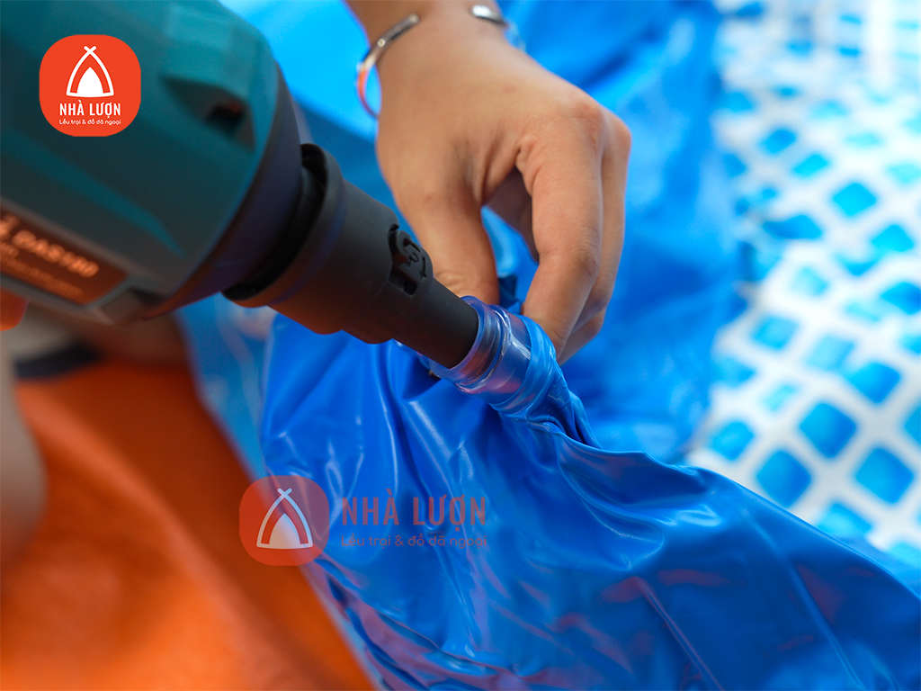 Sử dụng bơm để bơm căng phần viền bể bơi