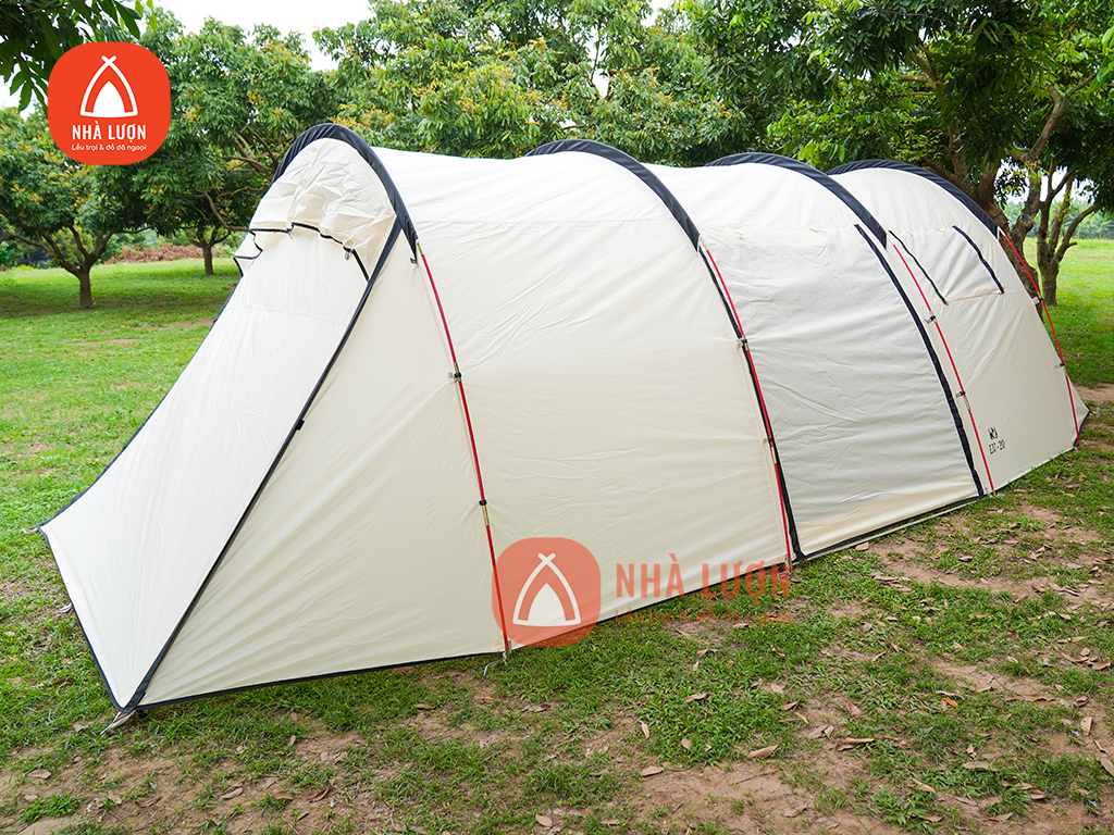 Lều 3 khoang là mẫu lều rộng rãi với kích thước 7m x 3m x 2m, phù hợp với gia đình và nhóm đông người.