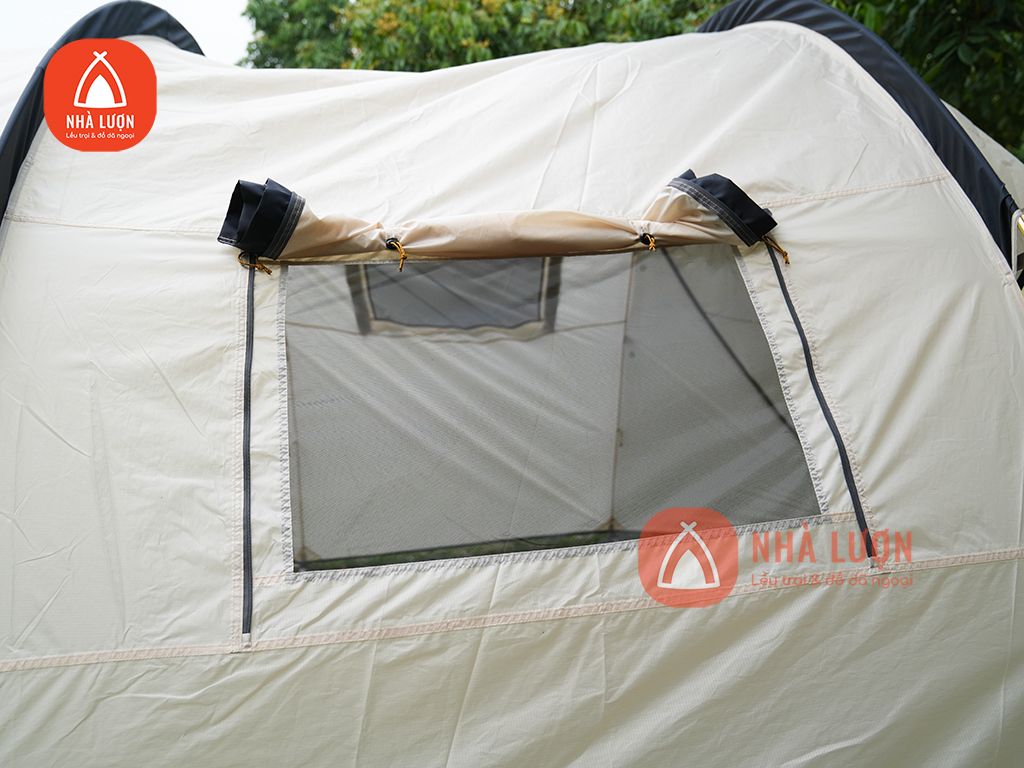 Lều có ô cửa sổ giúp lều thông thoáng và cửa được làm vải lưới tránh các con côn trùng bay vào trong lều.