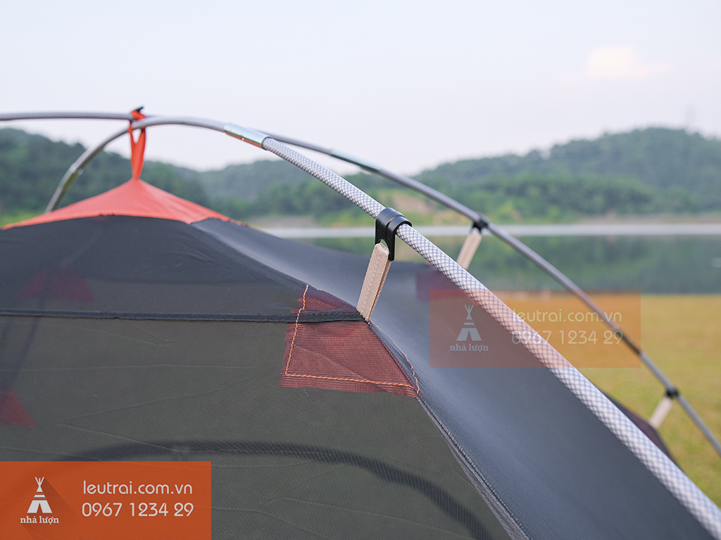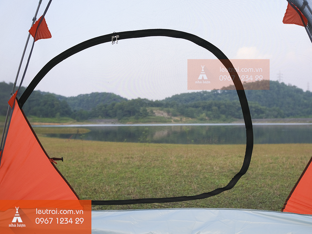 Cửa ra vào được thiết kế uốn cong cách điệu, cửa 2 lớp với lớp lưới và lớp che kín riêng biệt.Cửa sổ của lều, thiết kế có lưới chống côn trùng xâm nhập
