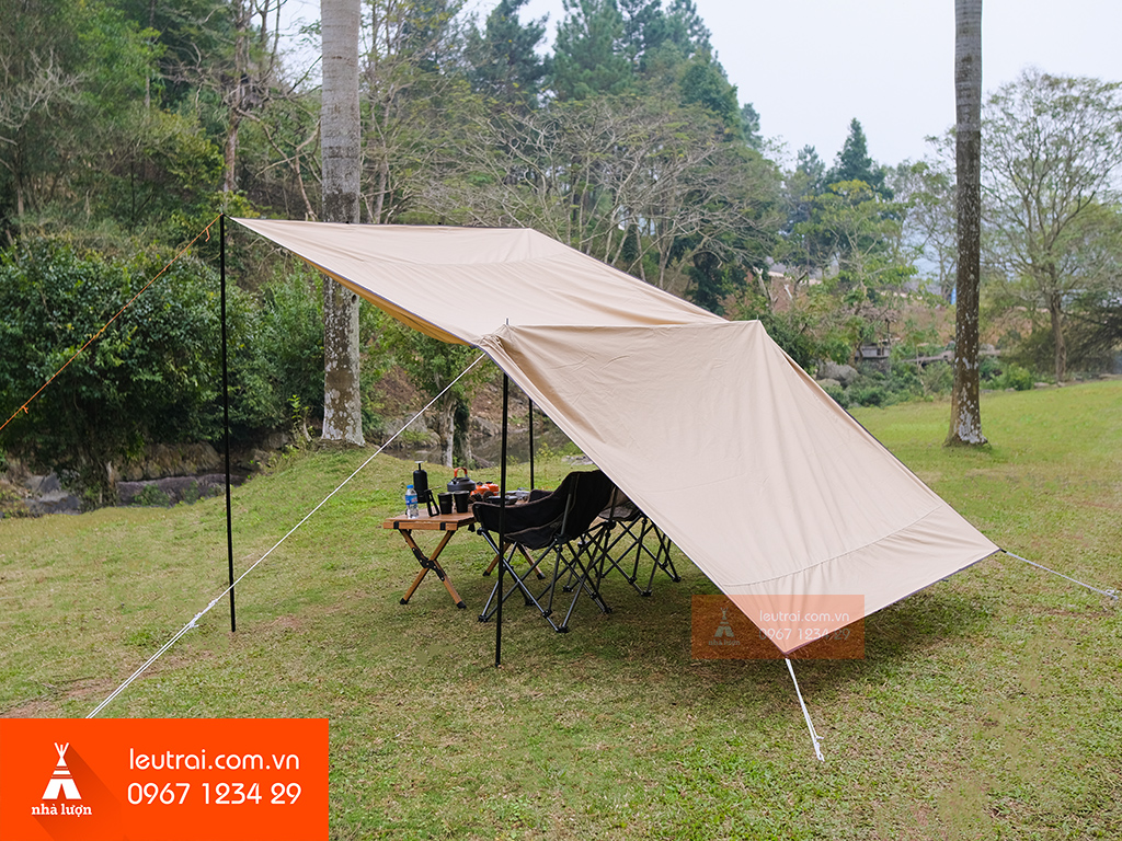 Có thể căng tấm phủ lên như một tấm tăng che nắng tiện lợi.