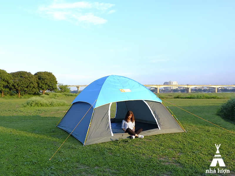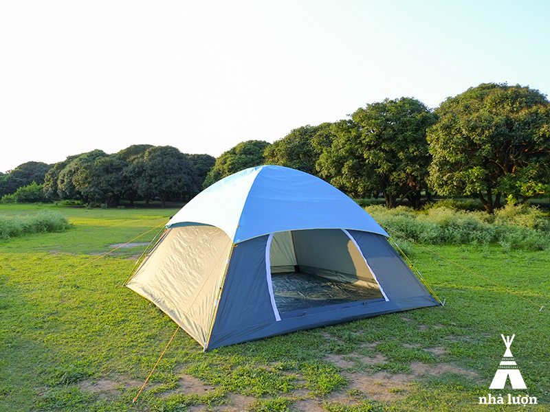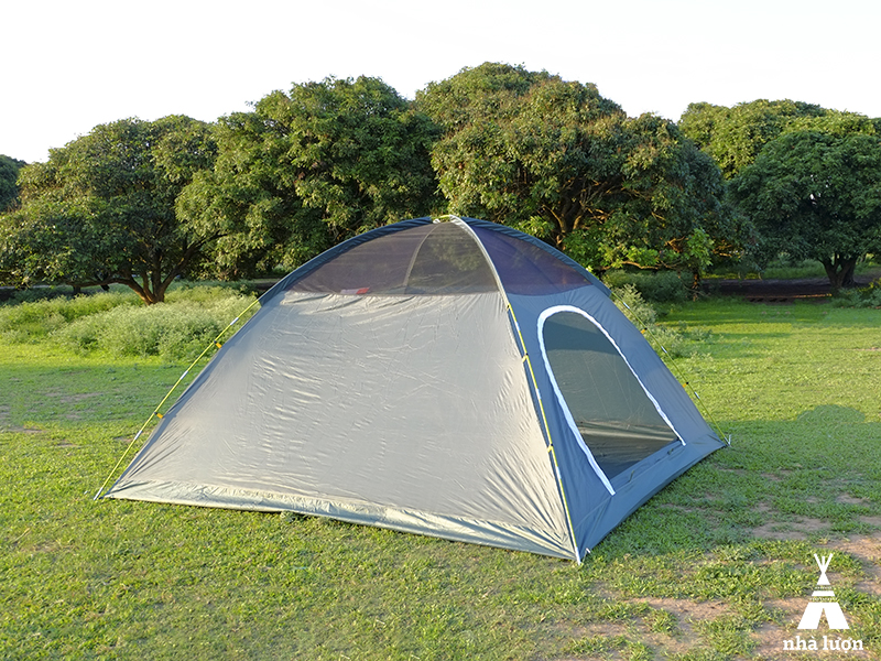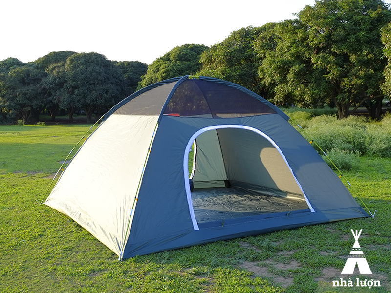 Lều có cửa ra vào lớn giúp việc ra vào dễ dàng và tăng cường thông gió.
