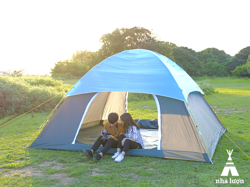 Lều thường có màu xanh lá cây phù hợp với nhiều môi trường cắm trại khác nhau.