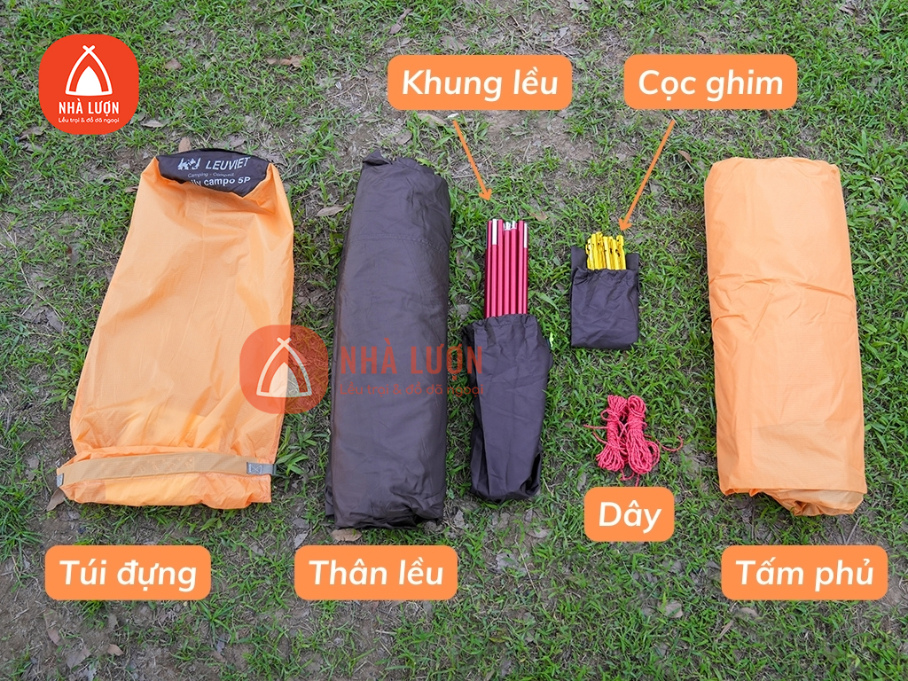 Lều được đựng trong túi nhỏ gọn thuận tiện trong việc mang di chuyển trong chuyến dã ngoại hay phượt.