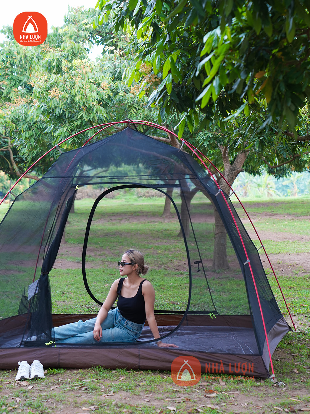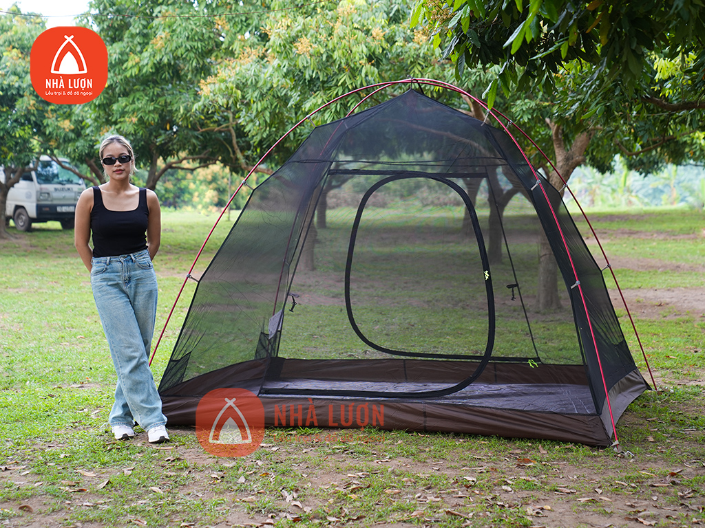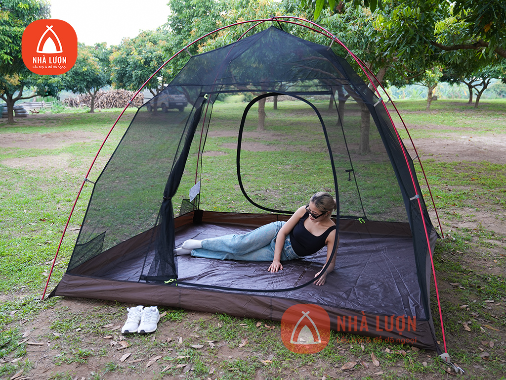 Phần thân lều toàn bộ được làm từ vải lưới giúp lều thông thoáng mà vẫn tránh được côn trùng bay vào trong lều.