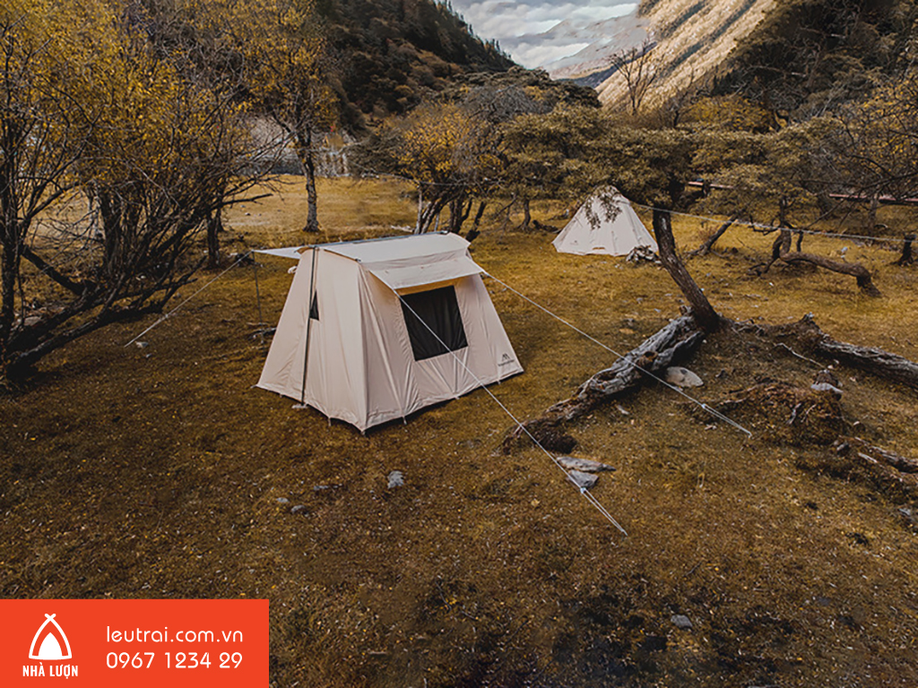 Phía trước lều là cửa ra vào được thiết kế rỗng rãi giúp di chuyển dễ dàng hơn. Tấm Phủ của lều có thể căng ra để làm mái hiên giúp tăng diện tích sử dụng