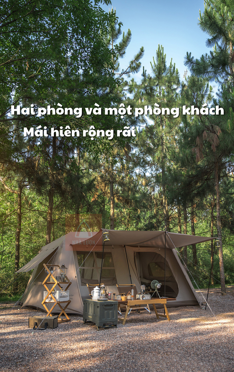 Lều Naturehike Glamping NH22ZP004 với thiết kế rộng rãi vì vậy giúp lều chia thành 2 phòng ngủ và khách