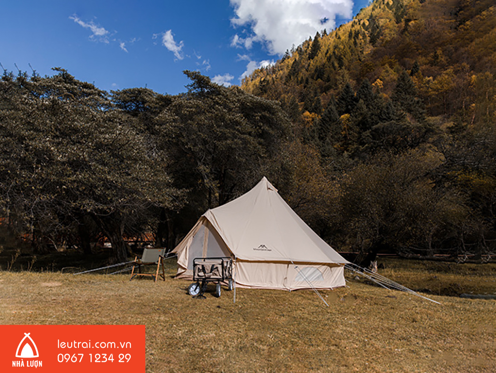 Với thiết kế giống như những chiếc lều thổ dân trên thảo nguyên Mông Cổ, mẫu lều này gây ấn tượng ngay từ cái nhìn đầu tiên. Thiết kế này cũng rất phù hợp với các khu cắm trại dịch vụ theo phong cách Glamping