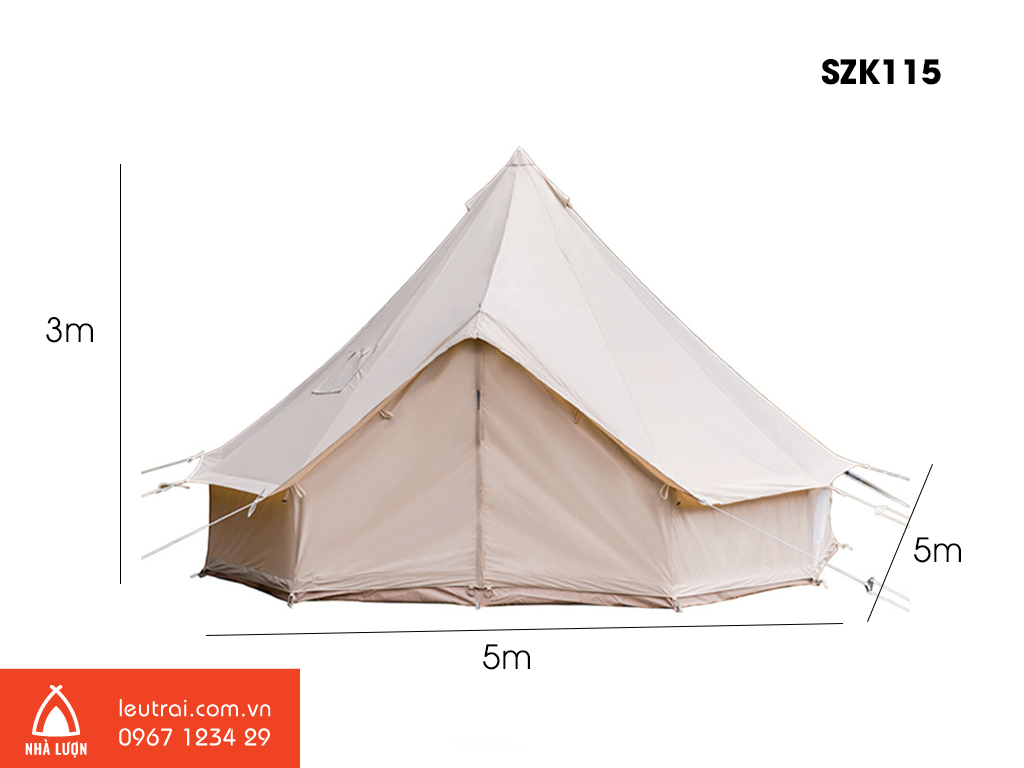 Kích thước đáy lều 5x5m, với chiều cao 3m