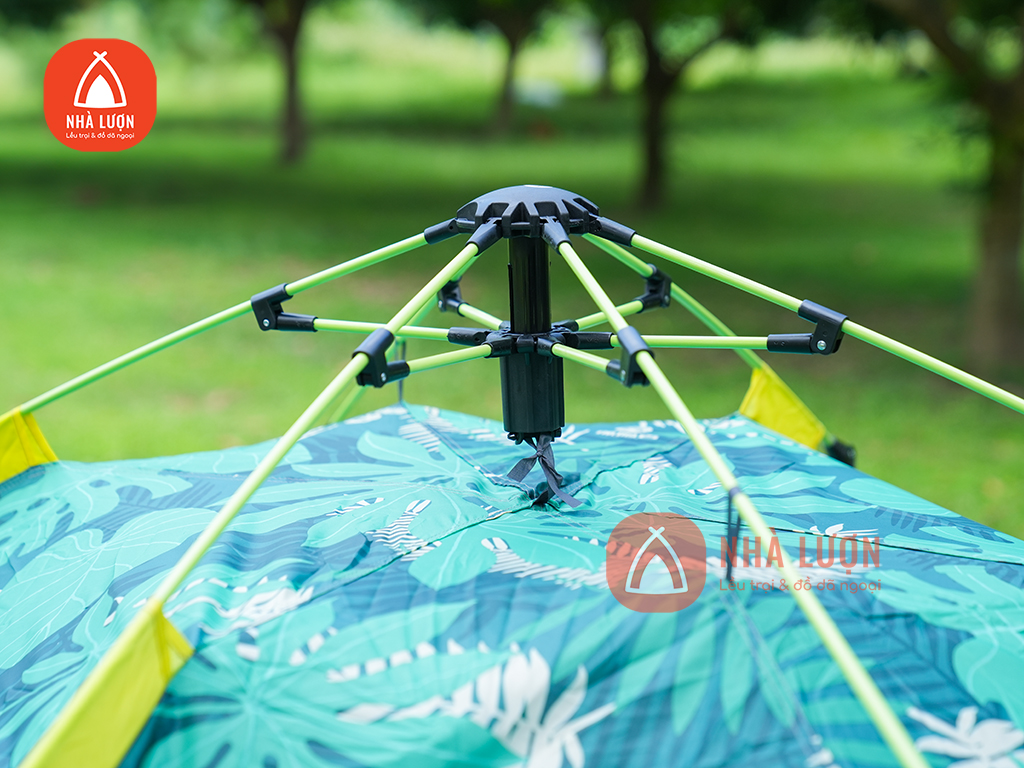 Lều tự bung Tanxianzhe TXZ-0097 là mẫu lều tự bung 1 lớp với màu xanh là chủ đạo, lều có họa tiết hình hoa lá giúp lều nhìn bắt mắt và nổi bật hơn. Lều có khả năng chống mưa nhẹ và với kích thước 2,02m x 1,95m vì vậy lều phù hợp cho 3-4 người là mẫu lều phù hợp cùng với gia đình, bạn bè trong các chuyến dã ngoại trong ngày.