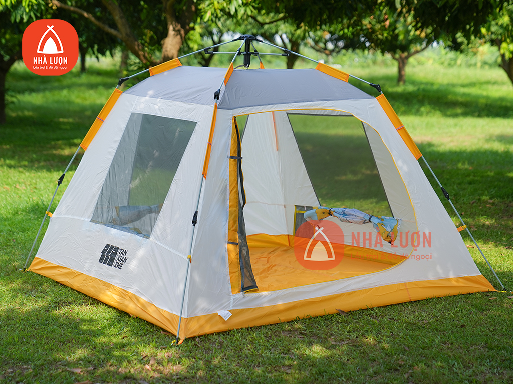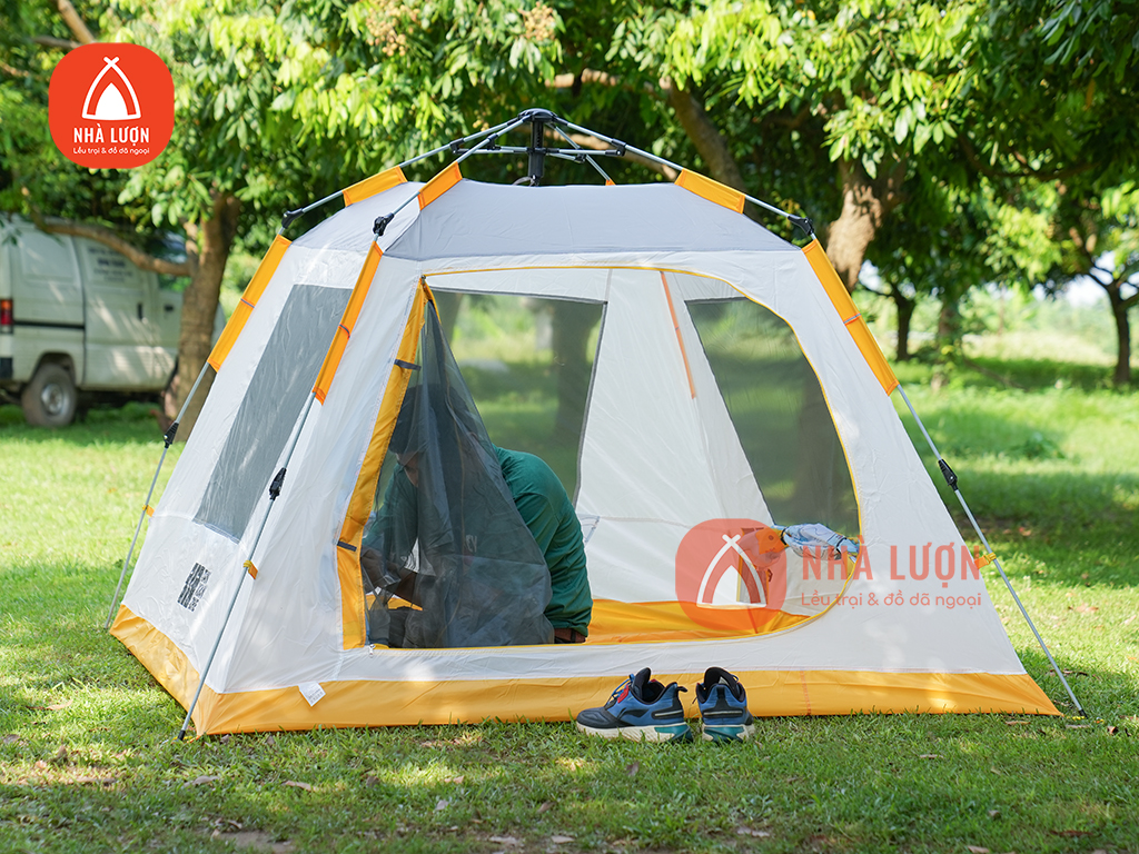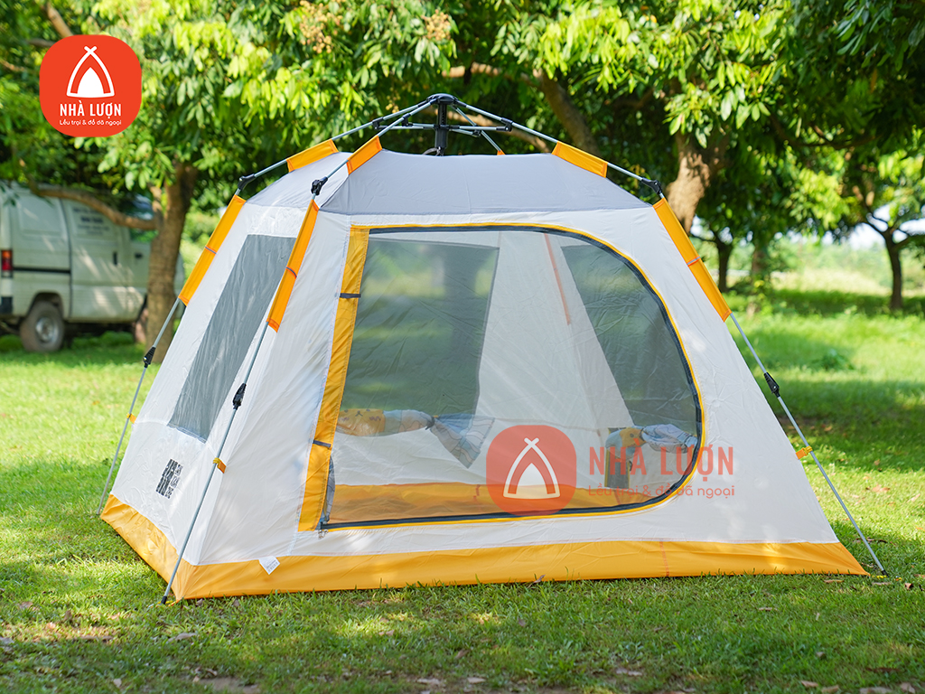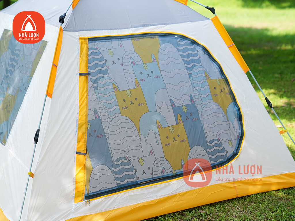 Lều có 1 cửa chính ra vào, xung quanh có 3 cửa sổ được may bằng vải lưới giúp lều thông thoáng và chống được các con côn trùng bay vào lều.