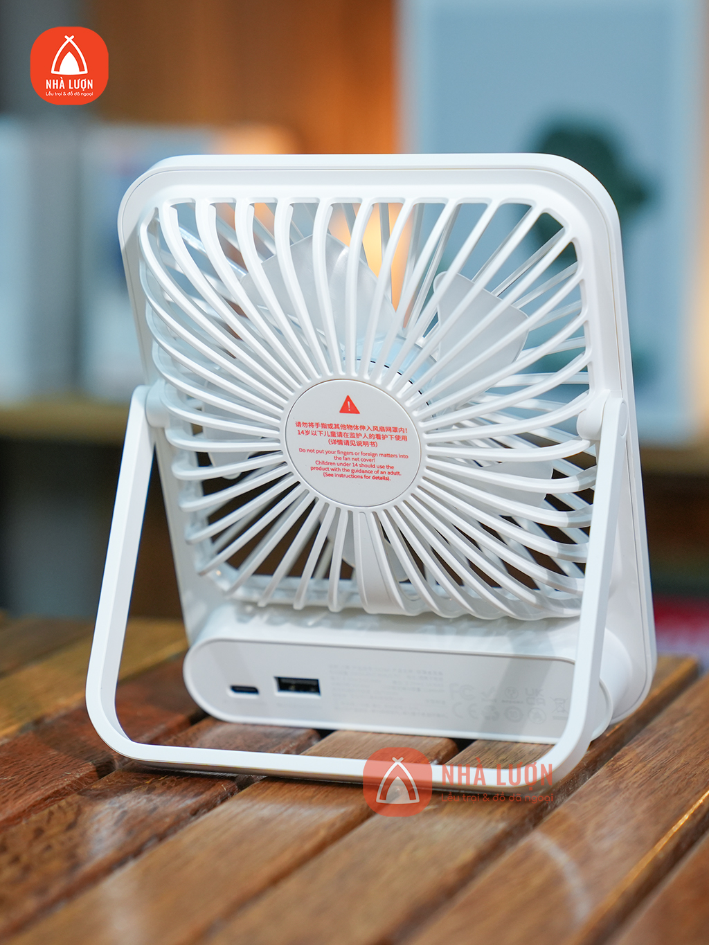 Quạt sử dụng cổng sạc Type C hỗ trợ sạc nhanh và cổng đầu ra USB để chúng ta có thể làm sạc dự phòng.