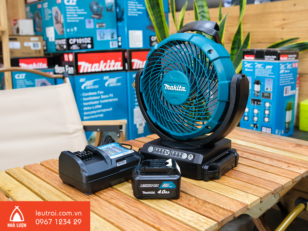 Bộ sản phẩm quạt Makita CF101DZ, pin 12V 4.0Ah cùng đế sạc đang có giá rất ưu đãi tại Nhà Lượn