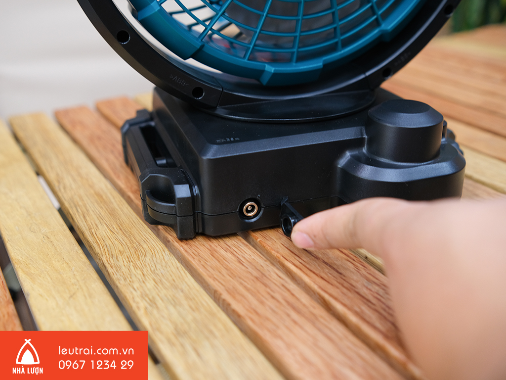 Chiếc quạt này cũng được thiết kế với lỗ cắm nguồn 12V để hoạt động qua bộ đổi nguồn mà không cần dùng pin, giúp sử dụng tiện lợi ở nhà hay văn phòng