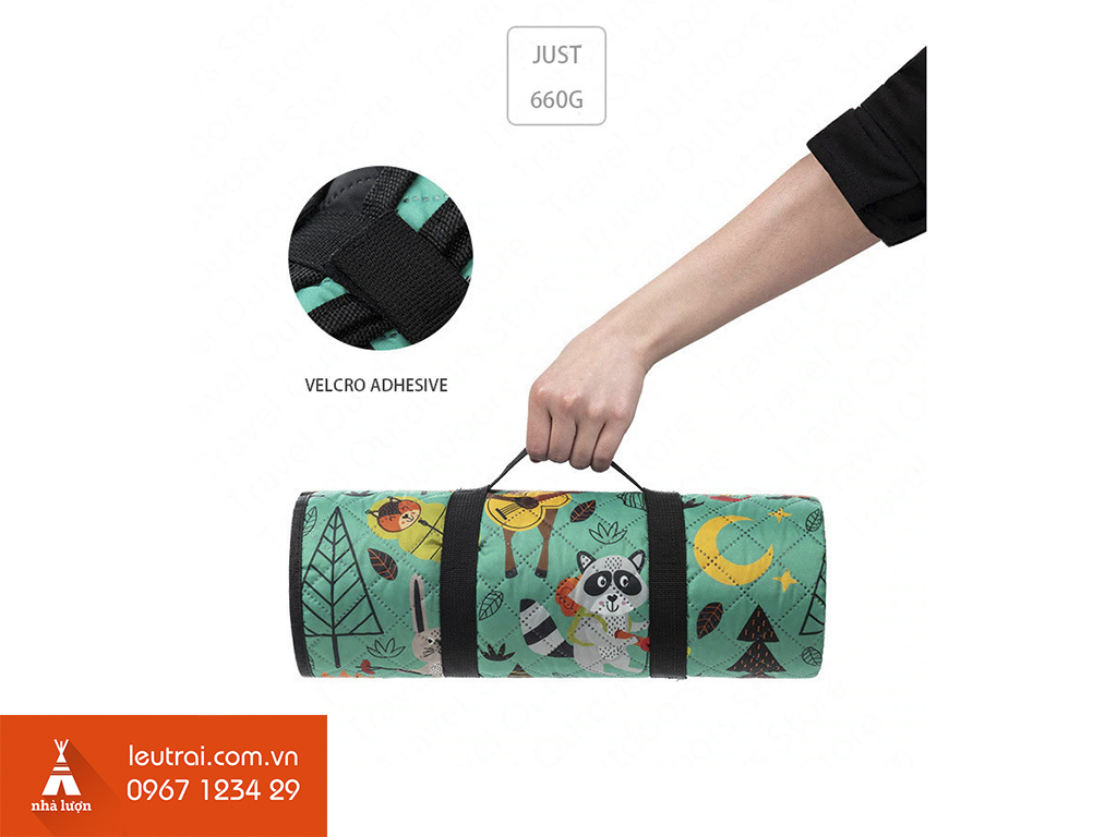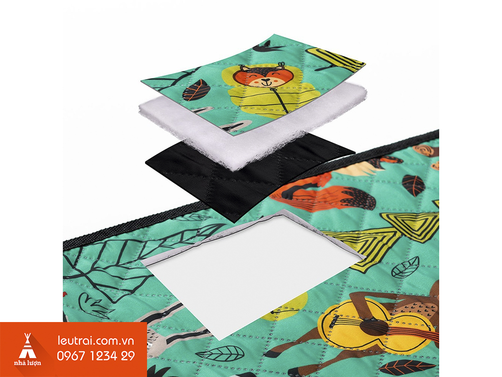 Được thiết kết 3 lớp, lớp trên cùng được làm bằng vải Polyester lớp giữa là một lớp bông giữ nhiệt và lớp cuối của thảm được làm bằng chất liệu vải Oxford cách nhiệt