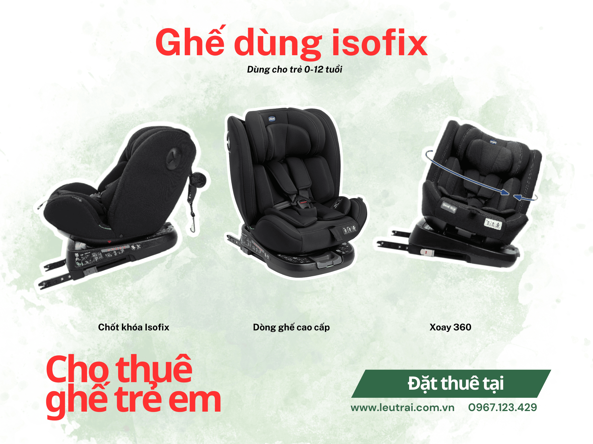 Dòng ghế cao cấp từ các thương hiệu Chicco, Joie, đạt tiêu chuẩn an toàn châu âu, sử dụng ngàm khóa isofix để kết nối nhanh chóng, có khả năng xoay 360 độ