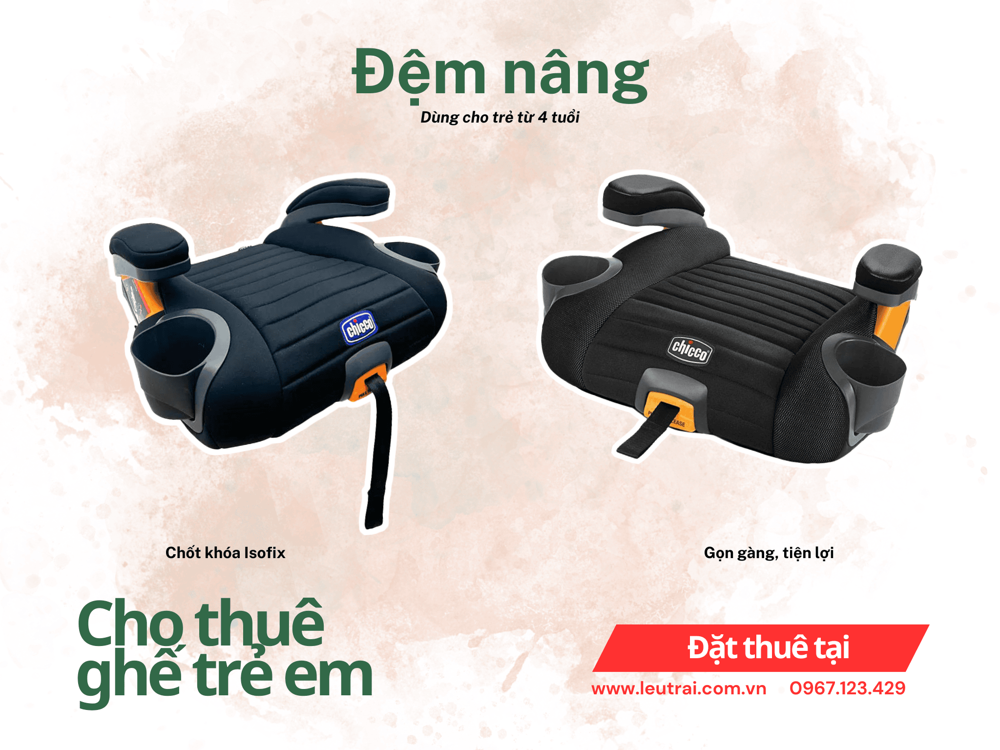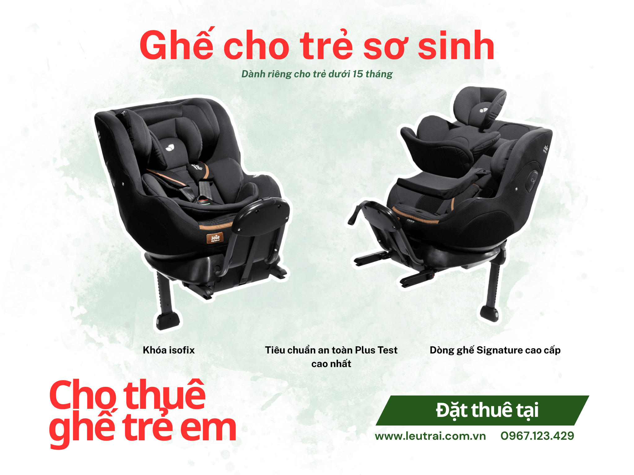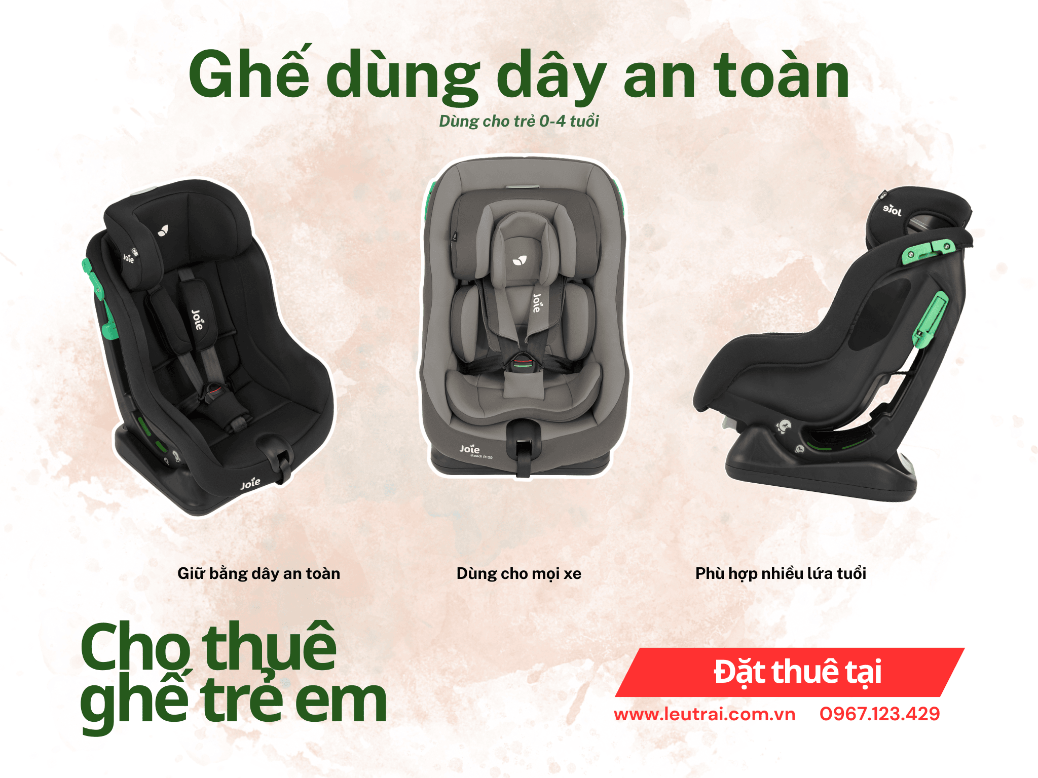 ✅ Chỉ sử dụng ghế của các thương hiệu lớn nổi tiếng (Chicco, Joie...), đạt tiêu chuẩn an toàn châu Âu (tiêu chuẩn ECE R44 hoặc ECE R129)