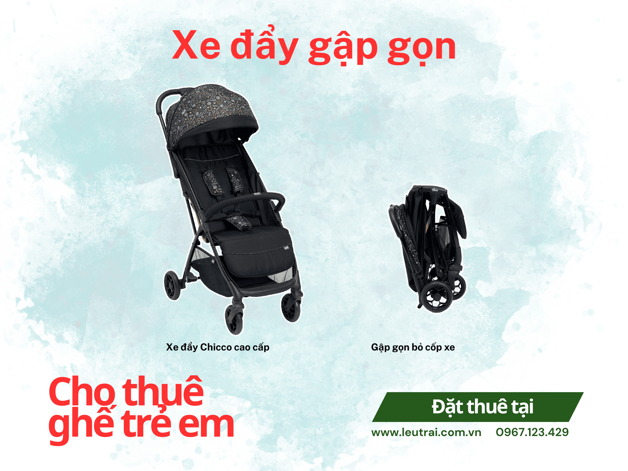 Dòng xe đẩy cao cấp đến từ Chicco, có thể dễ dàng gập gọn cất vào cốp xe khi di chuyển