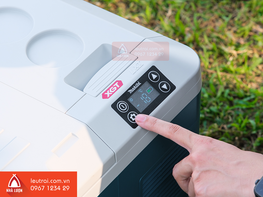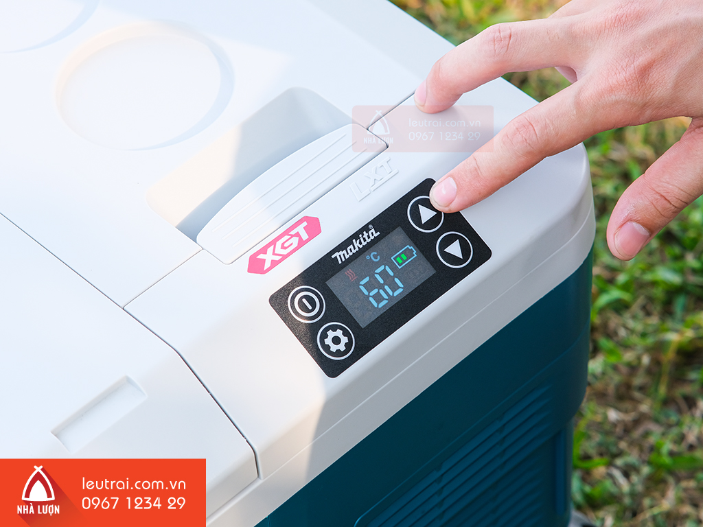 Hai nút điều khiển tăng giảm nhiệt độ, phần màn hình hiển thị nhiệt độ bên trong thùng, chế độ hoạt động và tình trạng pin