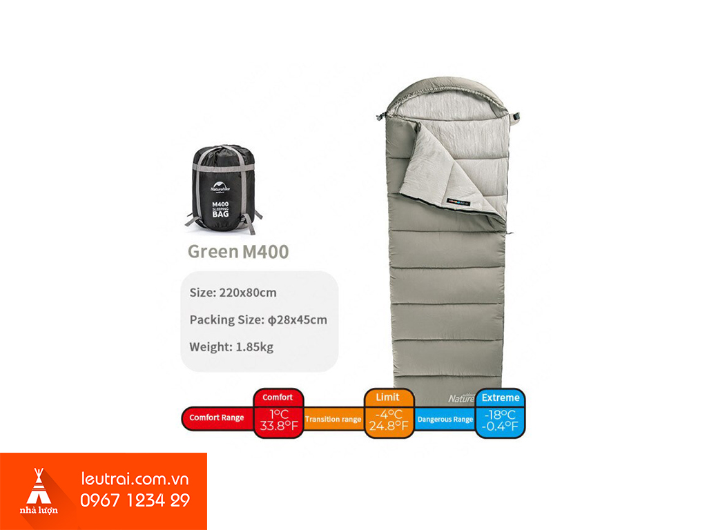 Dù trọng lượng siêu nhẹ, có thể chịu lạnh tới nhiệt độ từ âm 4 đến 6°C với lớp bông giữ ấm đảm bảo cho 1 giấc ngủ ngon ở bất cứ nơi đâu trong chuyến đi của bạn