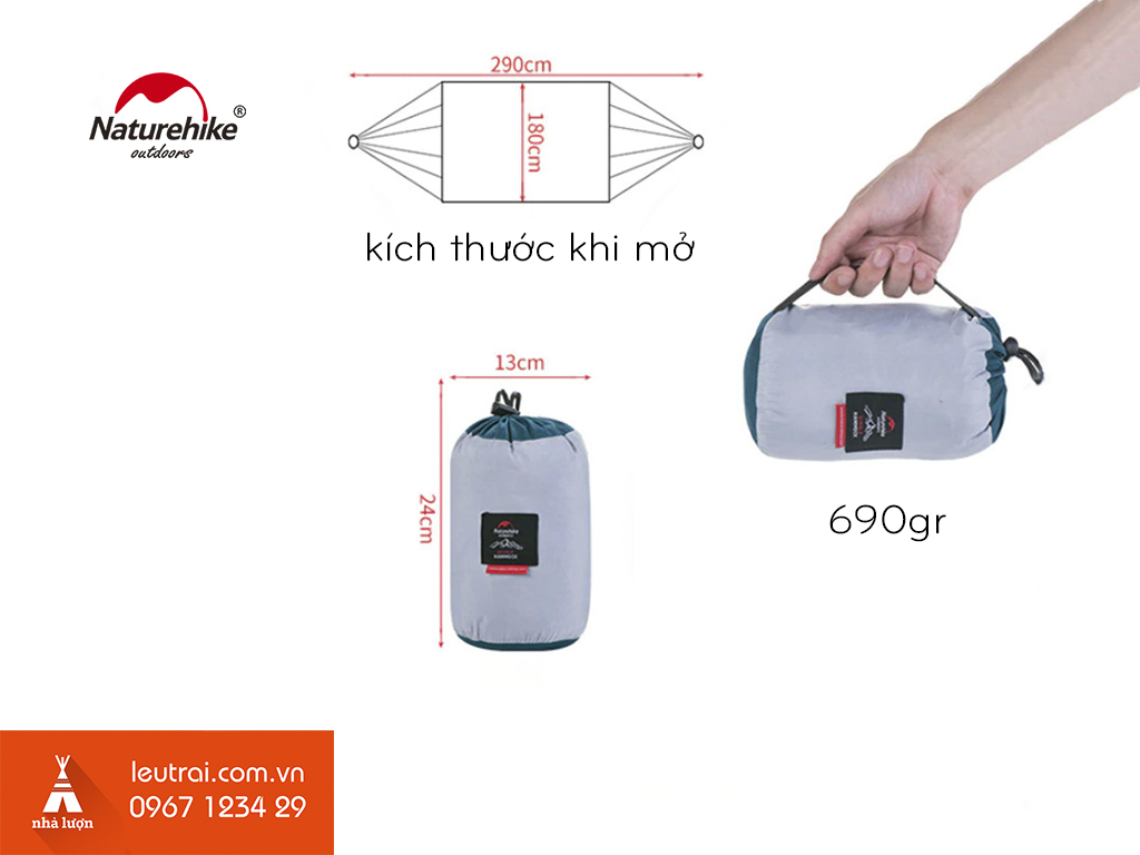 Võng đôi dã ngoại Naturehike NH17D012-B nhỏ gọn, nhẹ, dễ dàng mang theo cho những chuyến dã ngoại, cắm trại.