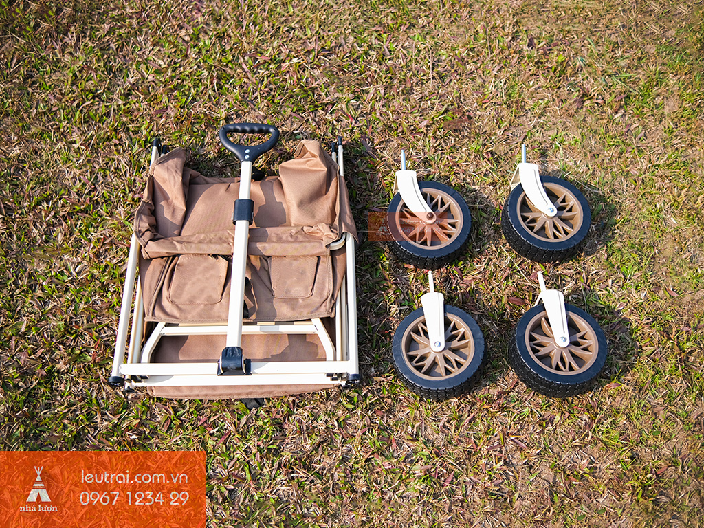 Xe được trang bị thêm bánh xe cao su dày, 4 bánh xe xoay 360° linh hoạt cùng tay cầm chắc chắn, giúp thực hiện việc di chuyển dễ dàng, phù hợp với các địa hình khác nhau.