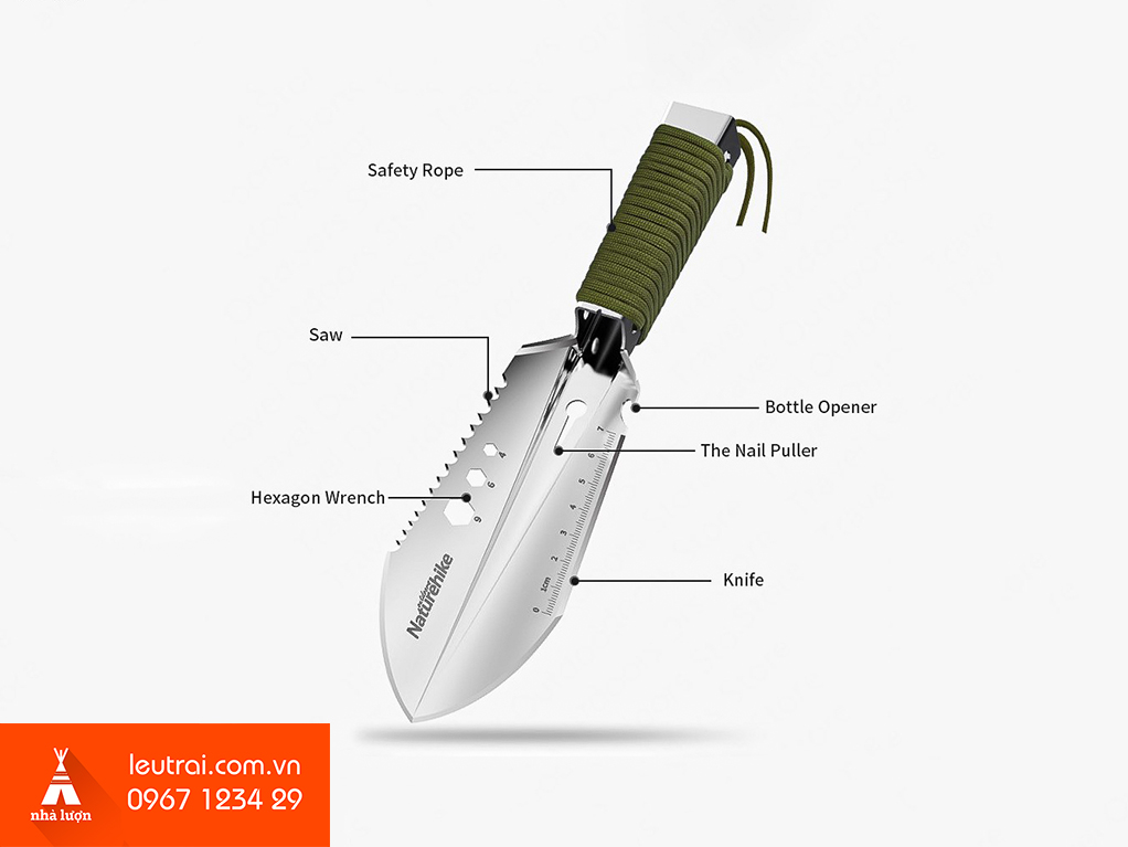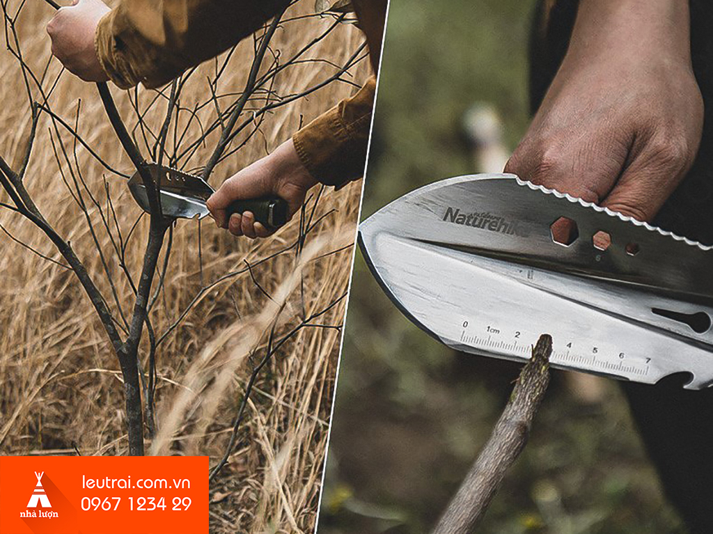 Một trong những món đồ được trang bị cho các phượt thủ là chiếc Xẻng đa năng Naturehike. Với thiết kế thông minh ngoài là một chiếc xẻng còn có thể biến đổi thành. Lưỡi cưa bao gồm nhiều răng cưa nhỏ, công dụng cưa cành cây nhỏ, cắt loại dây độ dai lớn mỗi lần cắm trại hay đi rừng.
